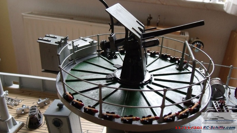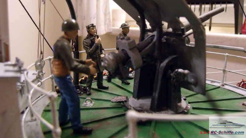 Geräusche: Kesselfeuer/Dampfmaschine-Leerlauf-Ein-Auskuppeln + Drehzahlabhängig div.andere Geräusche zufällig oder geschaltet, + WAW Player vor und rück, Rauchgenerator - Pizo Wasservernebler - 24V mit Gebläse Spannungswandler 12 auf 24V Vorschiff - Geschütz drehbar (Servo) Schuss mit Mündungsfeuer (Leuchtdiode) Beleuchtung: Positions- Lichter, Deck + Innen, Scheinwerfer, Steuerhaustüren auf - zu (Servo) |