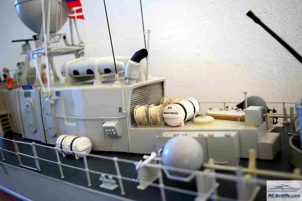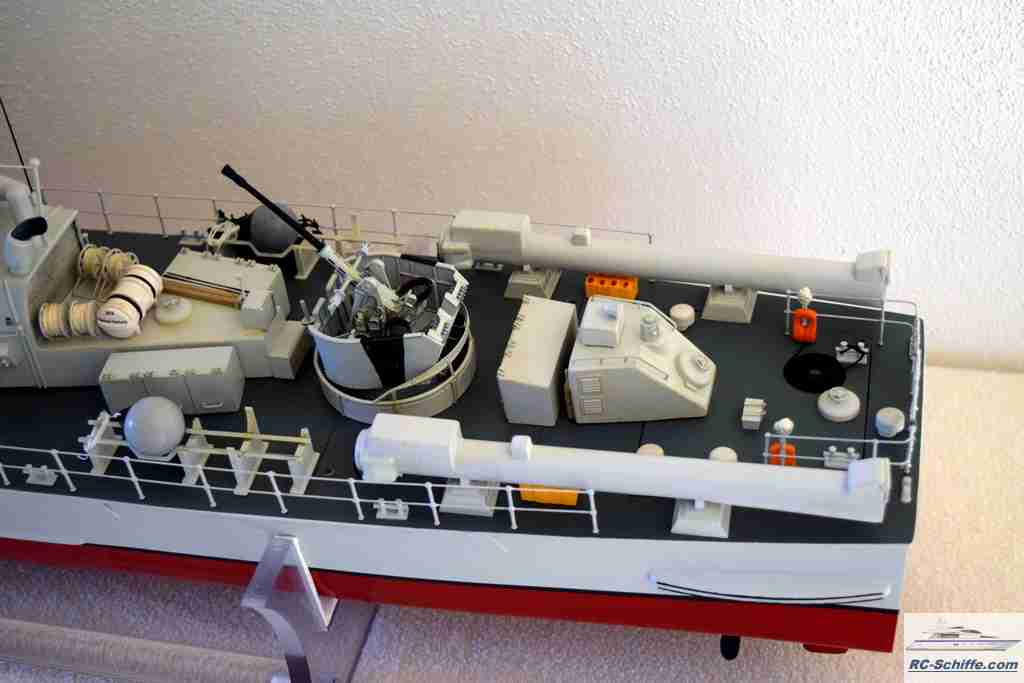 | Tipps für den Bau | Das Modell basiert auf dem bekannten Graupner-Bausatz „Wiesel“, von dem aber nur Rumpf und diverse Tiefziehteile, wie Teile des Motorhauses, Radom, Mannluken, etc. verwendet wurden. Die Bofors-Geschütze sind ebenfalls Graupner-Fertigmodelle, alle anderen Aufbauten wurden nach Plänen und Fotos aus ABS-Profilen und Frästeilen neu gefertigt. |