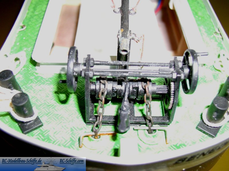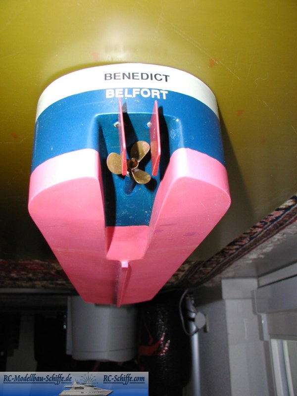 | Besonderheiten | Der Antrieb befindet sich in einem Tunnel und an seinem Ausgang wird ein Doppelruder angesteuert. Komplette Beleuchtung |