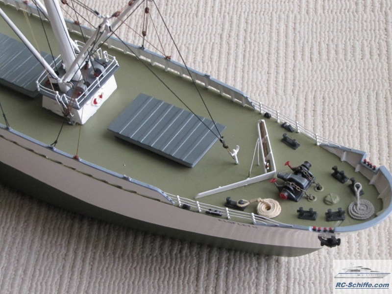 Sperrholz, Masten und Ladebeume sind aus Messingrohren. Das Modell